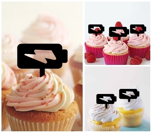 Battery Energy Cupcake 10 Toppers Laser Cut Acrylic for Wedding Birthday Baby Shower Bachelorette Engagement Party Decor