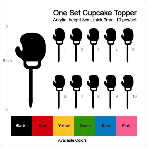 Boxing Glove Cupcake 10 Toppers Laser Cut Acrylic for Wedding Birthday Baby Shower Bachelorette Engagement Party Decor