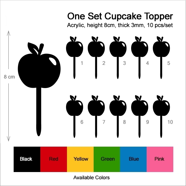 Cartoon Apple Cupcake 10 Toppers Laser Cut Acrylic for Wedding Birthday Baby Shower Bachelorette Engagement Party Decor