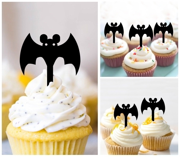 Cartoon Halloween Bat Cupcake 10 Toppers Laser Cut Acrylic for Wedding Birthday Baby Shower Bachelorette Engagement Party Decor