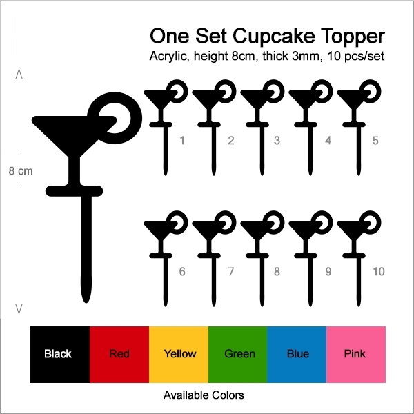 Cocktail Cupcake 10 Toppers Laser Cut Acrylic for Wedding Birthday Baby Shower Bachelorette Engagement Party Decor