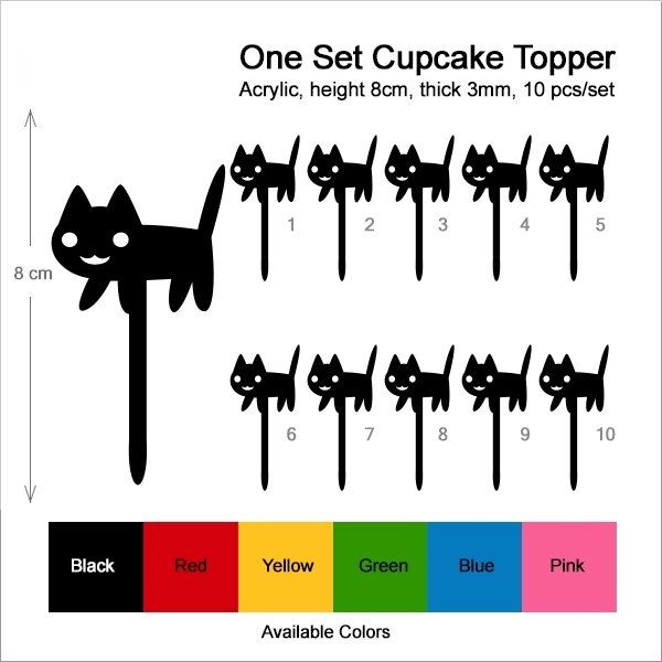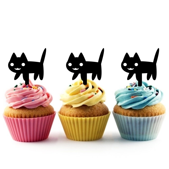 Cute Halloween Black Cat Cupcake 10 Toppers Laser Cut Acrylic for Wedding Birthday Baby Shower Bachelorette Engagement Party Decor