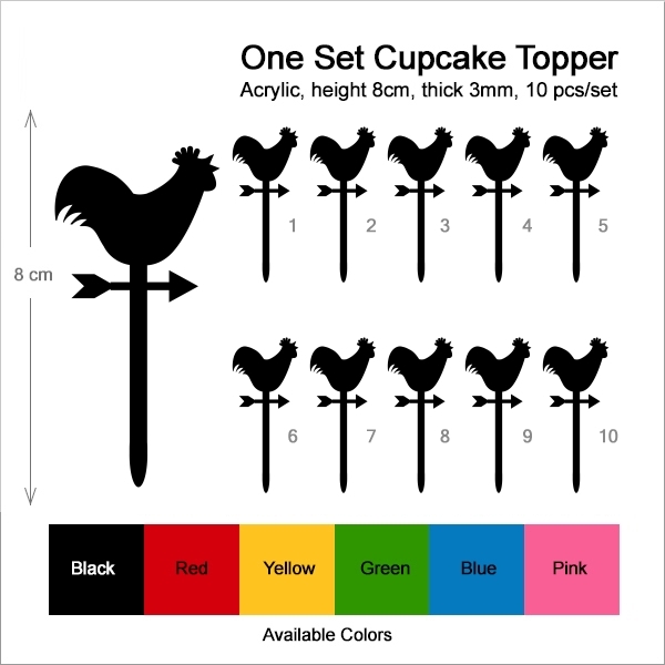 Farm Rooster Weathervane Cupcake 10 Toppers Laser Cut Acrylic for Wedding Birthday Baby Shower Bachelorette Engagement Party Decor