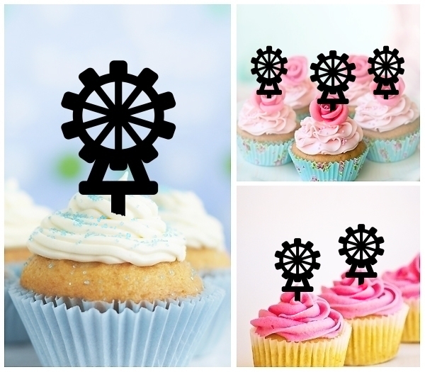 Ferris Wheel Amusement Park Cupcake 10 Toppers Laser Cut Acrylic for Wedding Birthday Baby Shower Bachelorette Engagement Party Decor