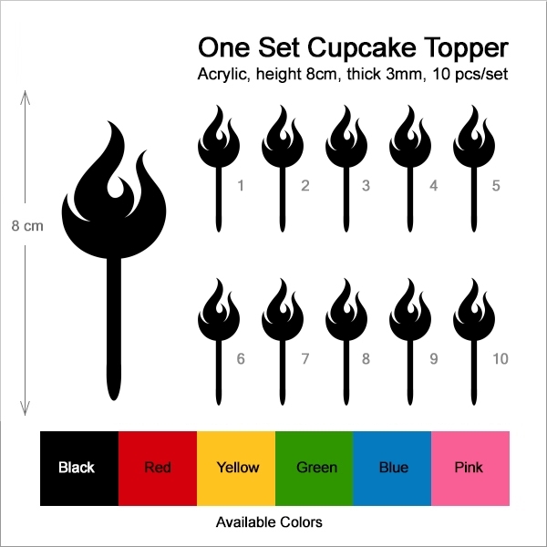Fire Flame Cupcake 10 Toppers Laser Cut Acrylic for Wedding Birthday Baby Shower Bachelorette Engagement Party Decor