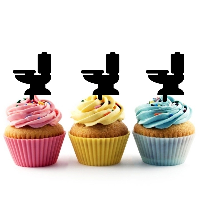 Flush Toilet Cupcake 10 Toppers Laser Cut Acrylic for Wedding Birthday Baby Shower Bachelorette Engagement Party Decor