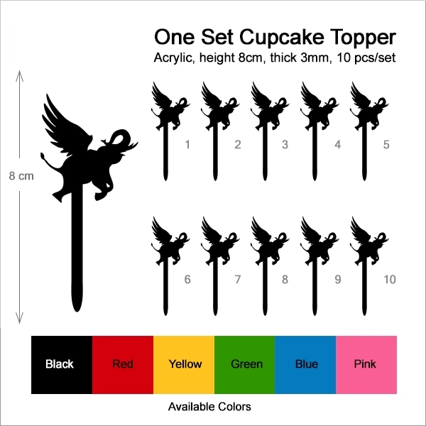 Flying Elephant Cupcake 10 Toppers Laser Cut Acrylic for Wedding Birthday Baby Shower Bachelorette Engagement Party Decor