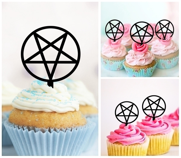Inverted Pentagram Cupcake 10 Toppers Laser Cut Acrylic for Wedding Birthday Baby Shower Bachelorette Engagement Party Decor