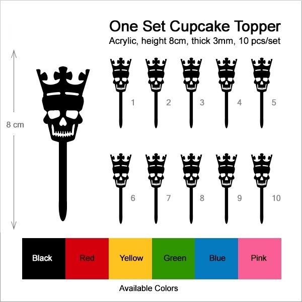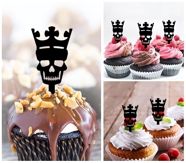 King Skull Crown Cupcake 10 Toppers Laser Cut Acrylic for Wedding Birthday Baby Shower Bachelorette Engagement Party Decor