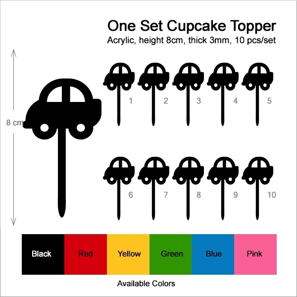Mini Car Cupcake 10 Toppers Laser Cut Acrylic for Wedding Birthday Baby Shower Bachelorette Engagement Party Decor