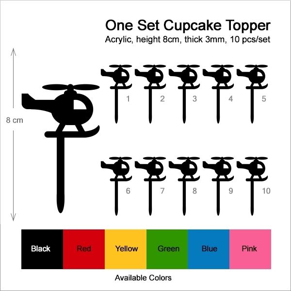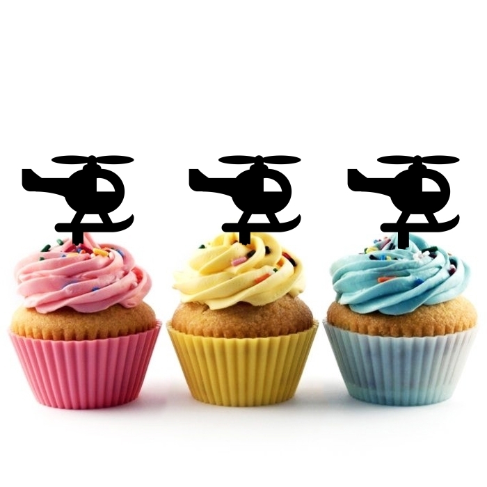 Mini Helicopter Cupcake 10 Toppers Laser Cut Acrylic for Wedding Birthday Baby Shower Bachelorette Engagement Party Decor