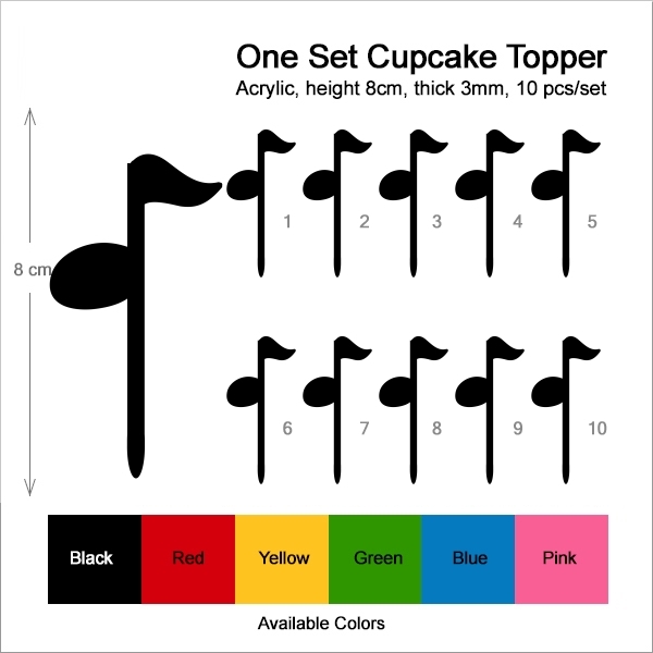 Music Note Cupcake 10 Toppers Laser Cut Acrylic for Wedding Birthday Baby Shower Bachelorette Engagement Party Decor
