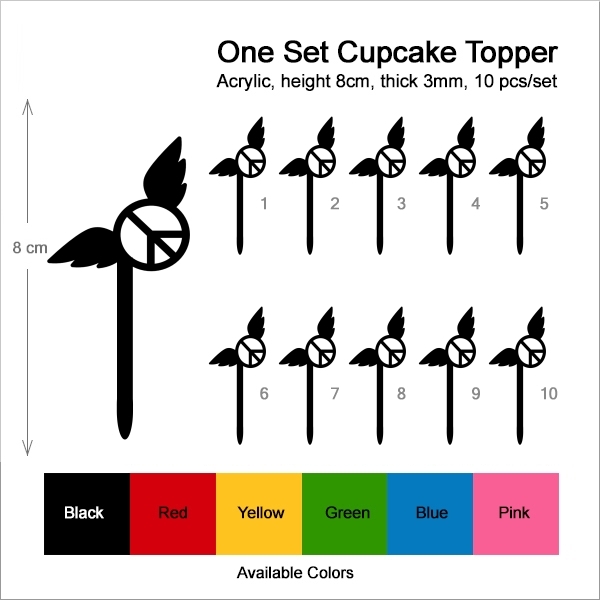 Peace Wings Cupcake 10 Toppers Laser Cut Acrylic for Wedding Birthday Baby Shower Bachelorette Engagement Party Decor