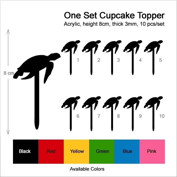 Sea Turtle Cupcake 10 Toppers Laser Cut Acrylic for Wedding Birthday Baby Shower Bachelorette Engagement Party Decor