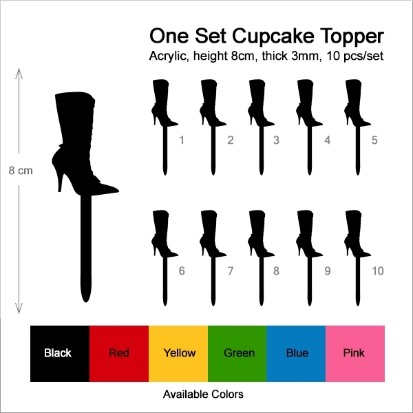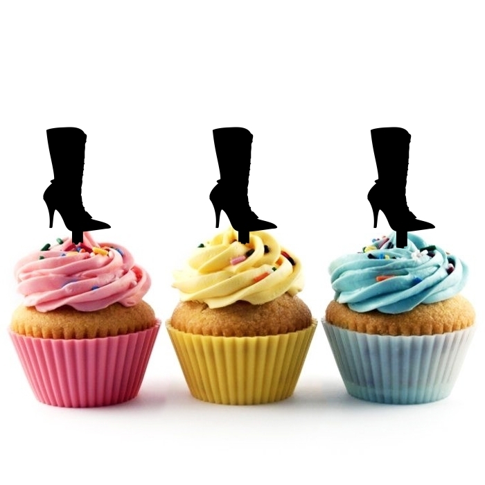 Sexy Long Boot Cupcake 10 Toppers Laser Cut Acrylic for Wedding Birthday Baby Shower Bachelorette Engagement Party Decor