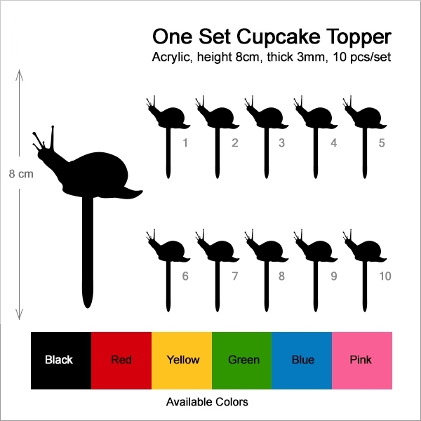 Snail Cupcake 10 Toppers Laser Cut Acrylic for Wedding Birthday Baby Shower Bachelorette Engagement Party Decor
