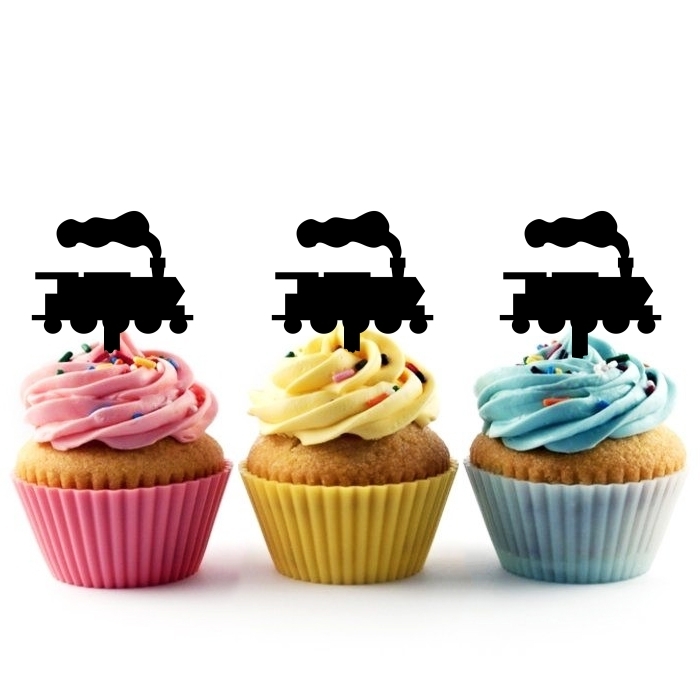 Steam Train Cupcake 10 Toppers Laser Cut Acrylic for Wedding Birthday Baby Shower Bachelorette Engagement Party Decor
