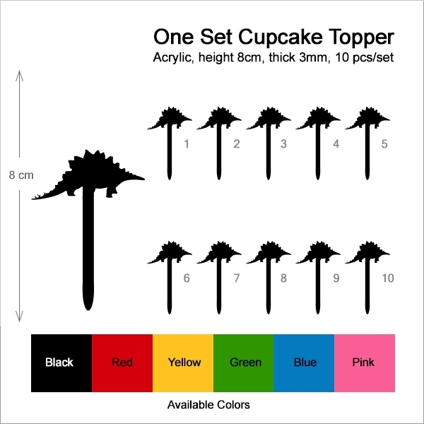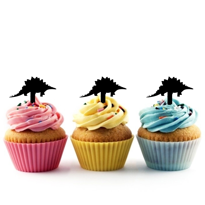 Stegosaurus Dinosaur Jurassic Cupcake 10 Toppers Laser Cut Acrylic for Wedding Birthday Baby Shower Bachelorette Engagement Party Decor