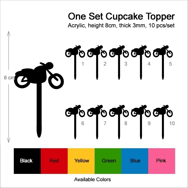 Vintage Motorcycle Cupcake 10 Toppers Laser Cut Acrylic for Wedding Birthday Baby Shower Bachelorette Engagement Party Decor