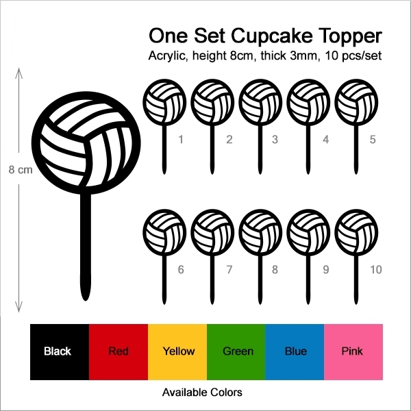 Volleyball Cupcake 10 Toppers Laser Cut Acrylic for Wedding Birthday Baby Shower Bachelorette Engagement Party Decor