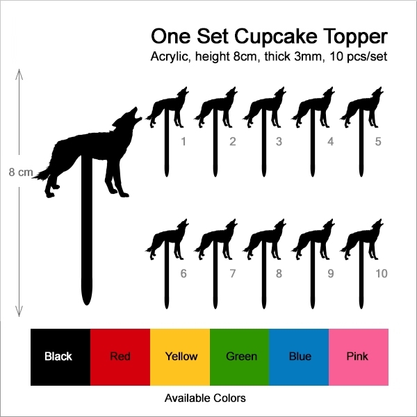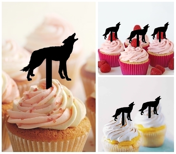 Wolf Howling Cupcake 10 Toppers Laser Cut Acrylic for Wedding Birthday Baby Shower Bachelorette Engagement Party Decor