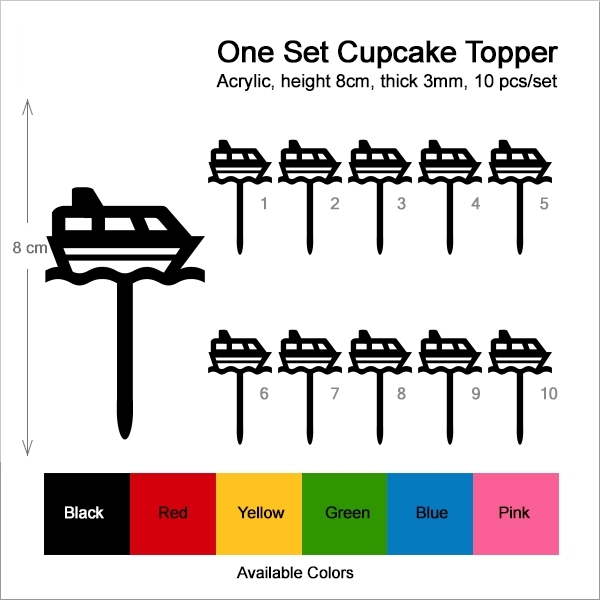 Yacht Cupcake 10 Toppers Laser Cut Acrylic for Wedding Birthday Baby Shower Bachelorette Engagement Party Decor