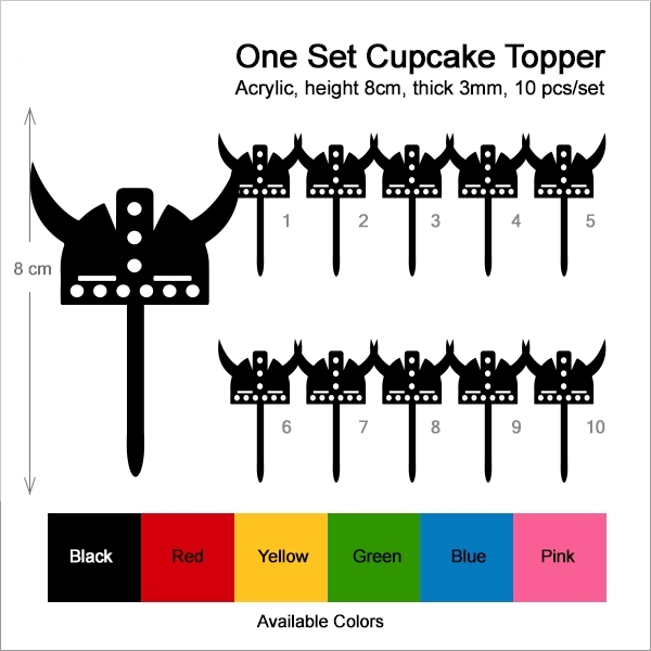 Viking Helmet Cupcake 10 Toppers Laser Cut Acrylic for Wedding Birthday Baby Shower Bachelorette Engagement Party Decor