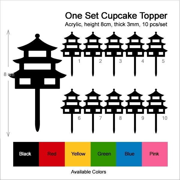 Japan Buddhist Temple Cupcake 10 Toppers Laser Cut Acrylic for Wedding Birthday Baby Shower Bachelorette Engagement Party Decor