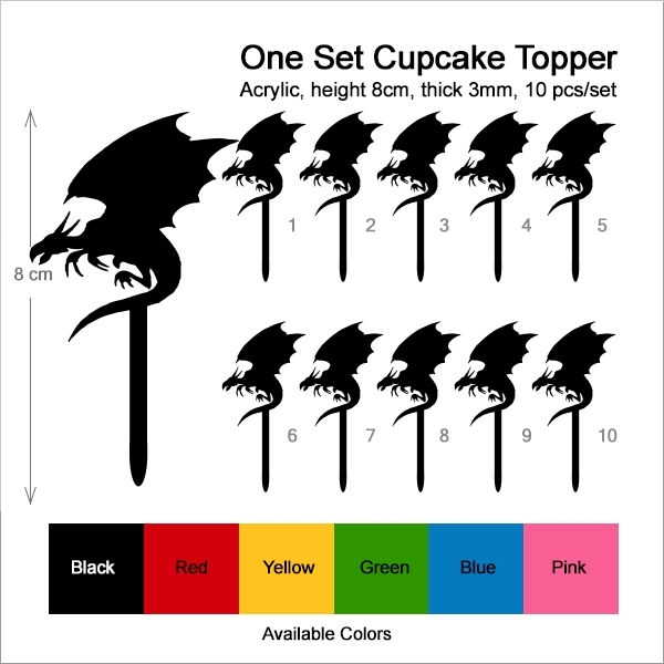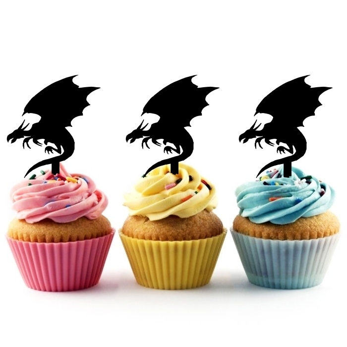 Flying Dragon Cupcake 10 Toppers Laser Cut Acrylic for Wedding Birthday Baby Shower Bachelorette Engagement Party Decor