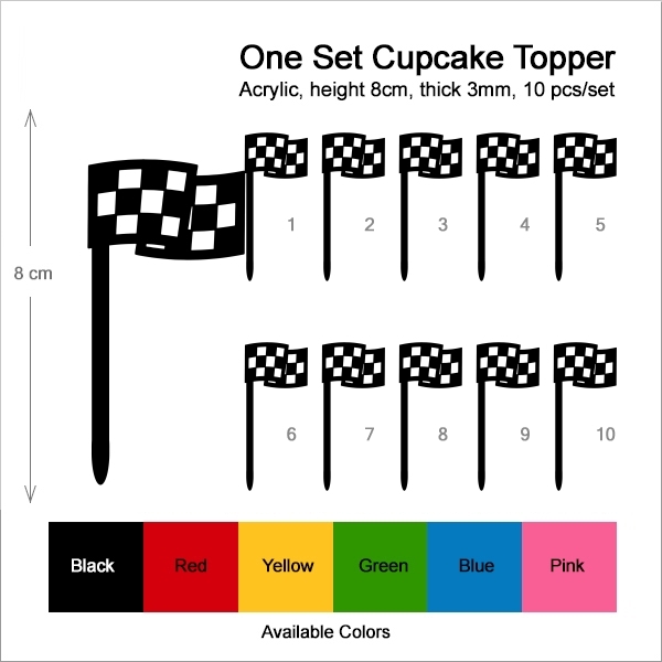 Racing Checkered Flag Cupcake 10 Toppers Laser Cut Acrylic for Wedding Birthday Baby Shower Bachelorette Engagement Party Decor