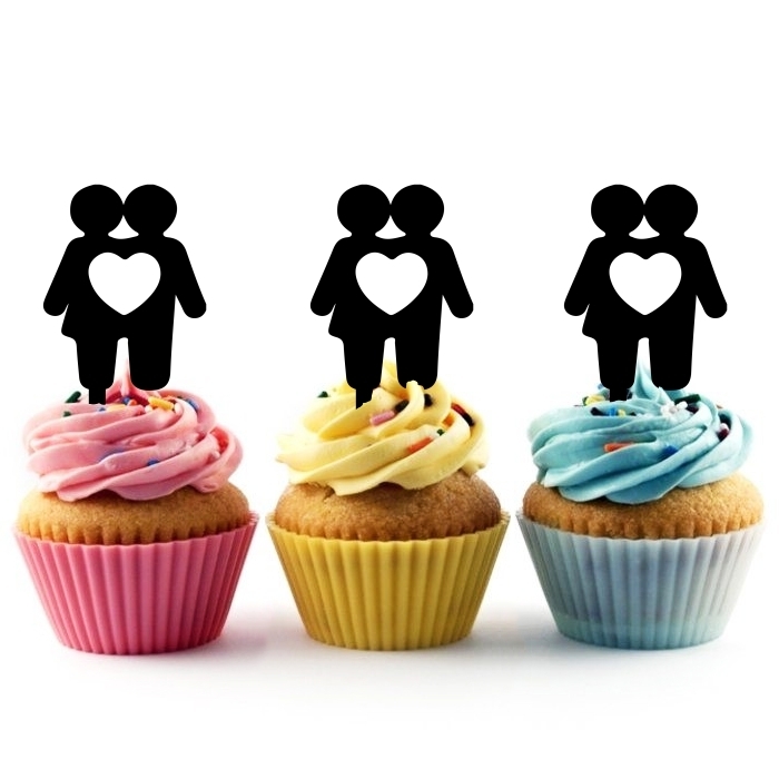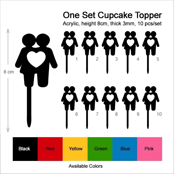 Couple Love Heart Cupcake 10 Toppers Laser Cut Acrylic for Wedding Birthday Baby Shower Bachelorette Engagement Party Decor