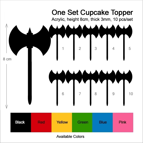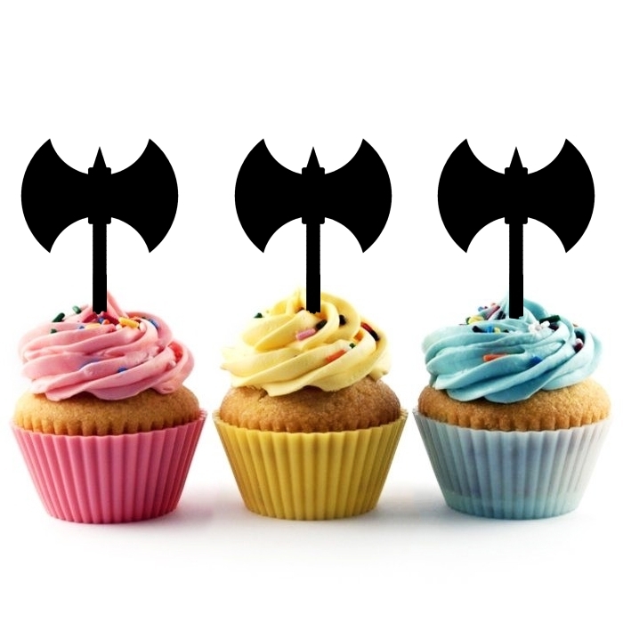Double Headed Axe Weapon Cupcake 10 Toppers Laser Cut Acrylic for Wedding Birthday Baby Shower Bachelorette Engagement Party Decor