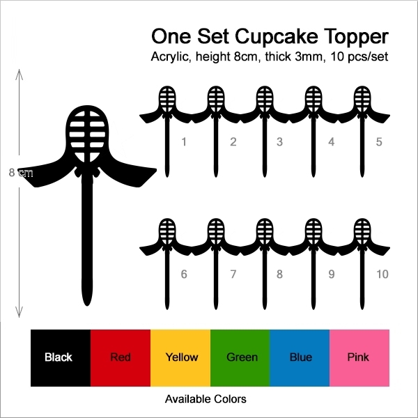 Kendo Helmet Mask Cupcake 10 Toppers Laser Cut Acrylic for Wedding Birthday Baby Shower Bachelorette Engagement Party Decor