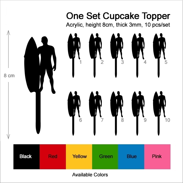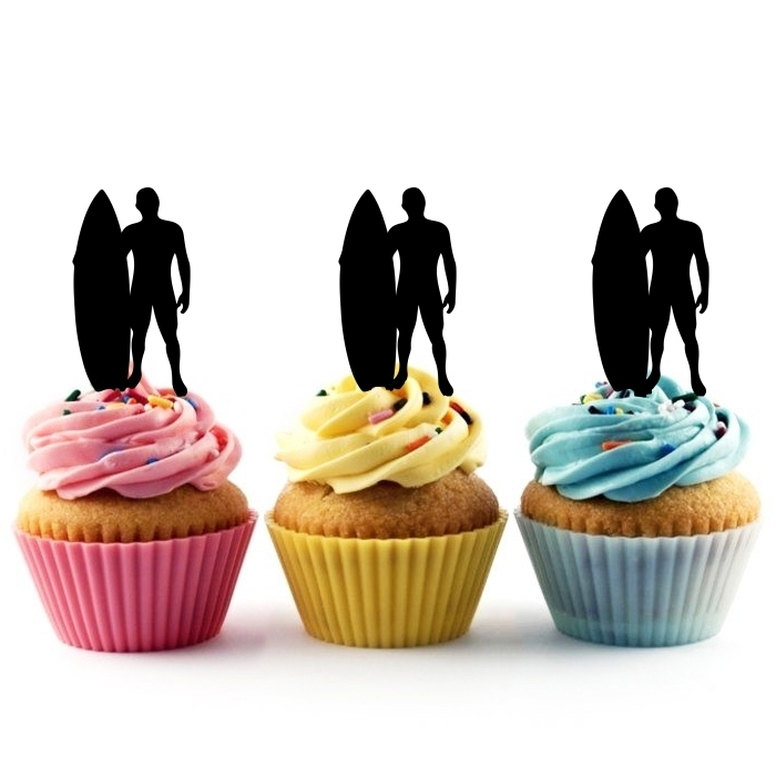 Surfer Beach Boy Cupcake 10 Toppers Laser Cut Acrylic for Wedding Birthday Baby Shower Bachelorette Engagement Party Decor