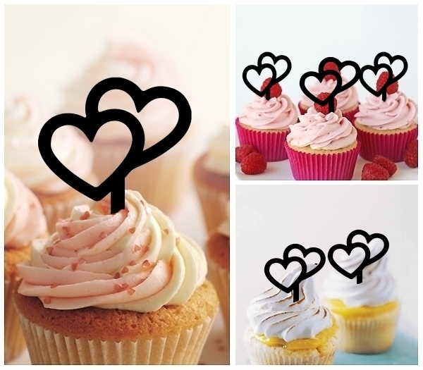 Two Hearts Love Valentine Cupcake 10 Toppers Laser Cut Acrylic for Wedding Birthday Baby Shower Bachelorette Engagement Party Decor