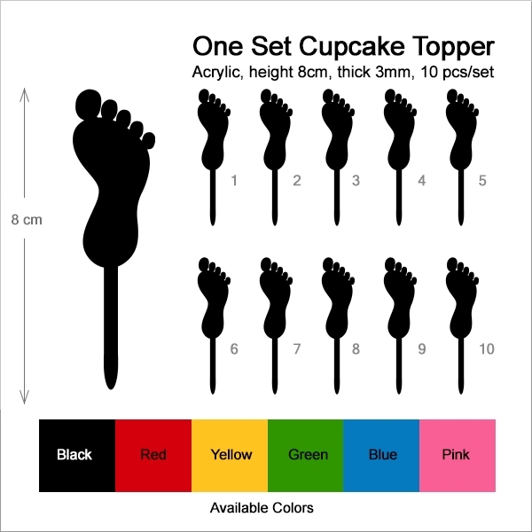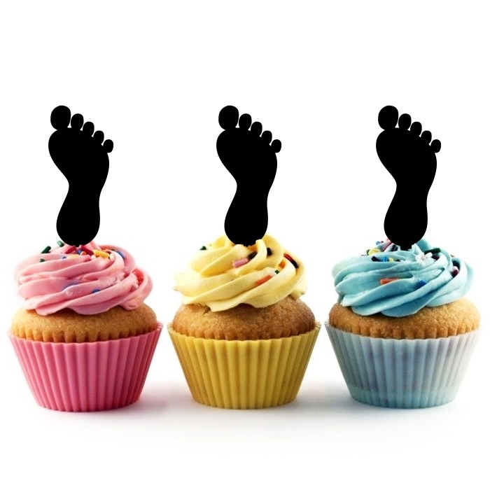 Foot Print Cupcake 10 Toppers Laser Cut Acrylic for Wedding Birthday Baby Shower Bachelorette Engagement Party Decor