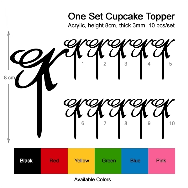 K Letter Alphabet Cupcake 10 Toppers Laser Cut Acrylic for Wedding Birthday Baby Shower Bachelorette Engagement Party Decor
