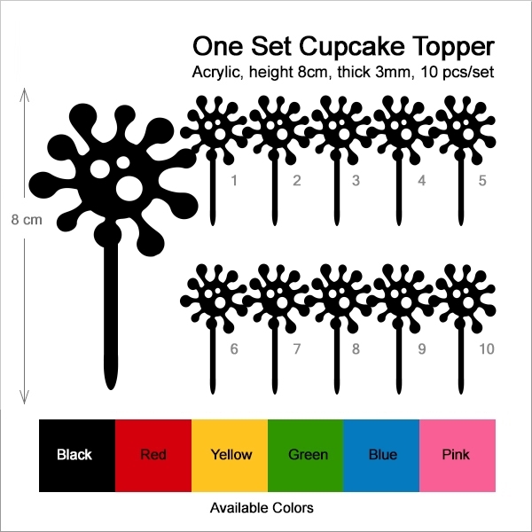 Virus Cupcake 10 Toppers Laser Cut Acrylic for Wedding Birthday Baby Shower Bachelorette Engagement Party Decor