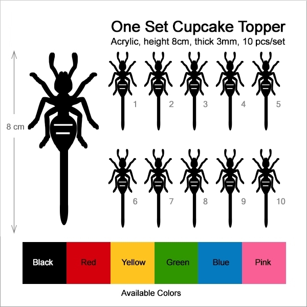 Black Ant Insect Bug Cupcake 10 Toppers Laser Cut Acrylic for Wedding Birthday Baby Shower Bachelorette Engagement Party Decor