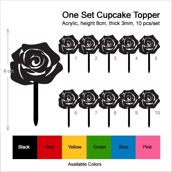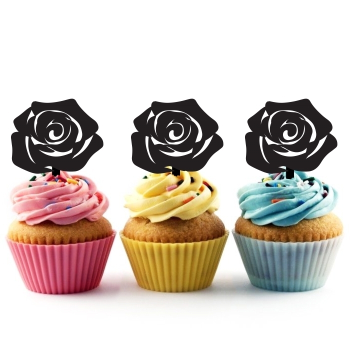 Rose Flower Flora Cupcake 10 Toppers Laser Cut Acrylic for Wedding Birthday Baby Shower Bachelorette Engagement Party Decor