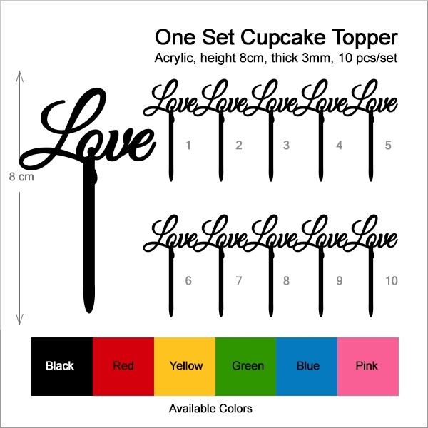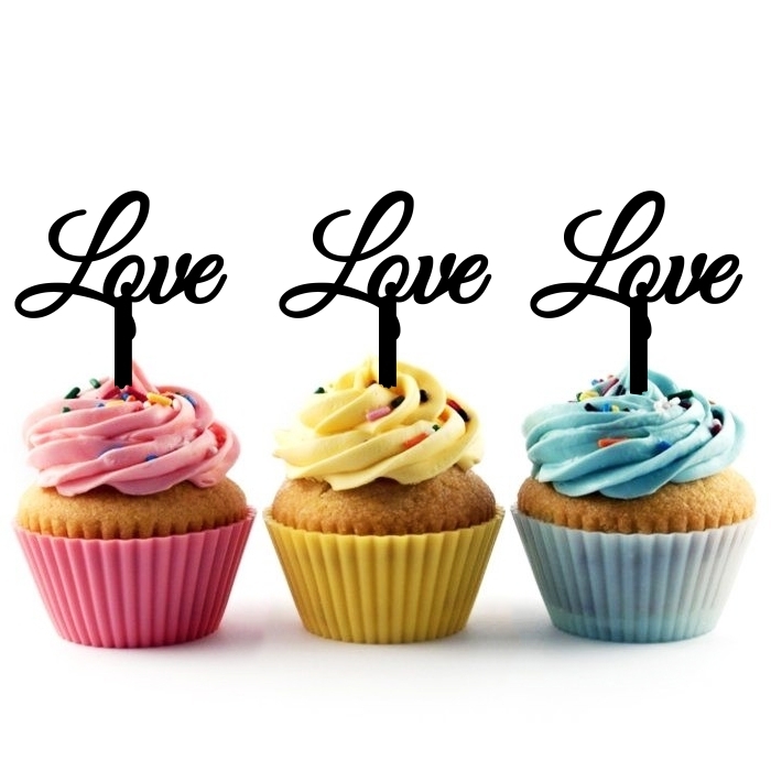 Love Text Cupcake 10 Toppers Laser Cut Acrylic for Wedding Birthday Baby Shower Bachelorette Engagement Party Decor