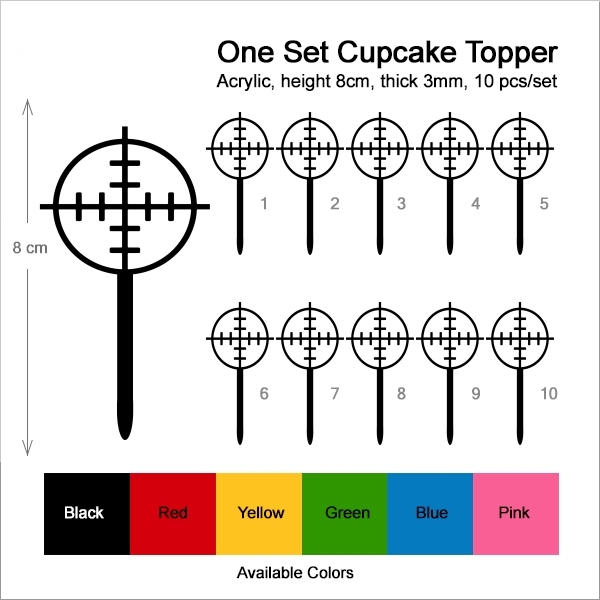 Gun Shooting Target Circle Cupcake 10 Toppers Laser Cut Acrylic for Wedding Birthday Baby Shower Bachelorette Engagement Party Decor