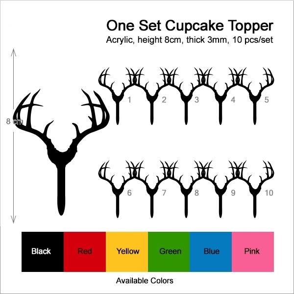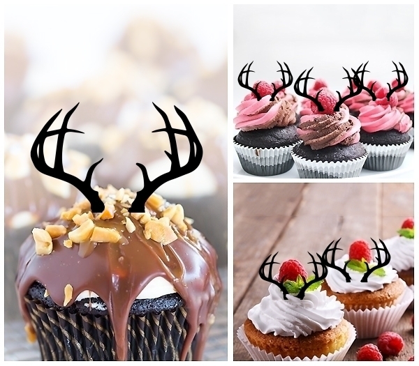 Deer Horn Antlers Cupcake 10 Toppers Laser Cut Acrylic for Wedding Birthday Baby Shower Bachelorette Engagement Party Decor
