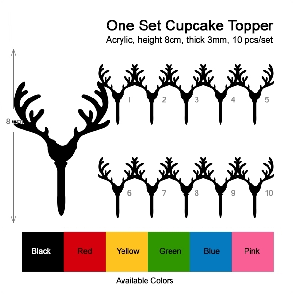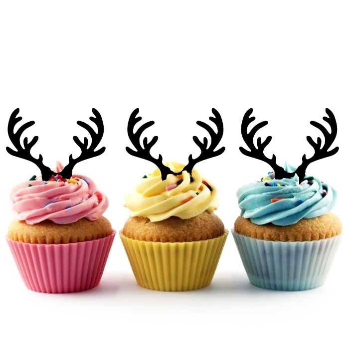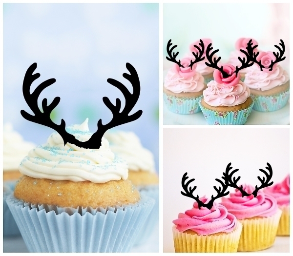 Cute Deer Horn Antlers Cupcake 10 Toppers Laser Cut Acrylic for Wedding Birthday Baby Shower Bachelorette Engagement Party Decor