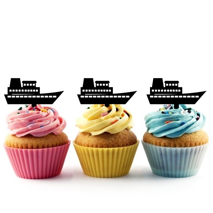 Cruise Ship Cupcake 10 Toppers Laser Cut Acrylic for Wedding Birthday Baby Shower Bachelorette Engagement Party Decor