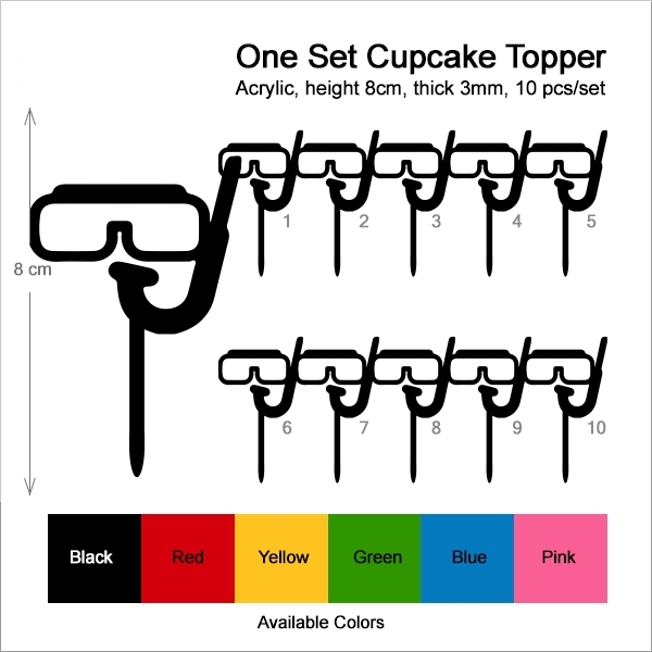 Summer Beach Diving Glasses Cupcake 10 Toppers Laser Cut Acrylic for Wedding Birthday Baby Shower Bachelorette Engagement Party Decor