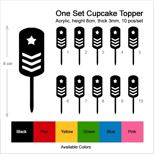 Military Badges Army Rank Cupcake 10 Toppers Laser Cut Acrylic for Wedding Birthday Baby Shower Bachelorette Engagement Party Decor