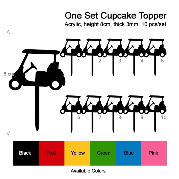 Golf cart Cupcake 10 Toppers Laser Cut Acrylic for Wedding Birthday Baby Shower Bachelorette Engagement Party Decor