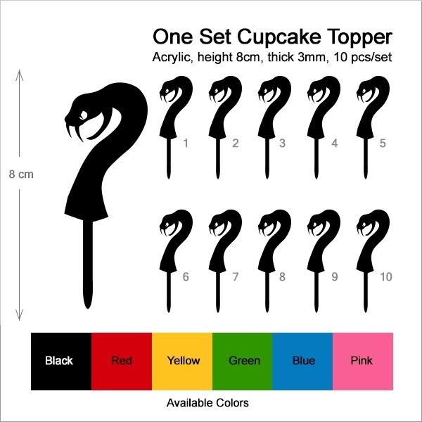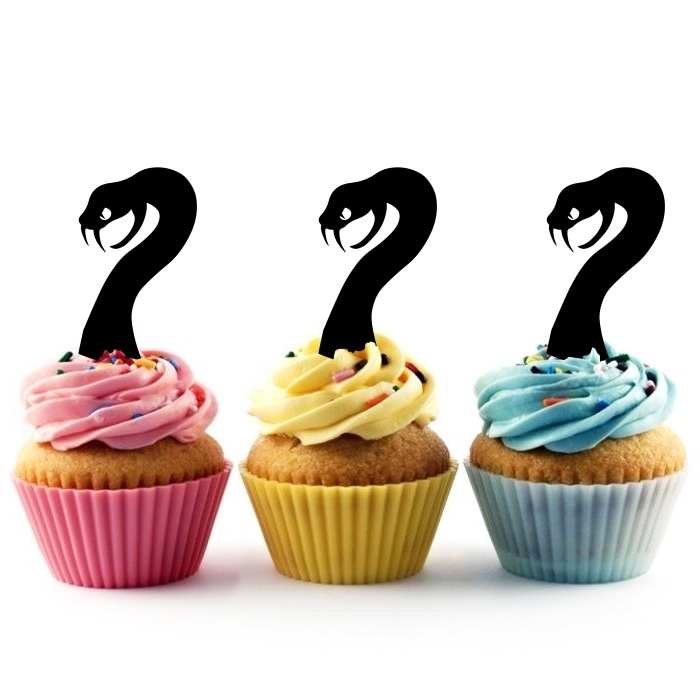 Cobra Snake Head Cupcake 10 Toppers Laser Cut Acrylic for Wedding Birthday Baby Shower Bachelorette Engagement Party Decor