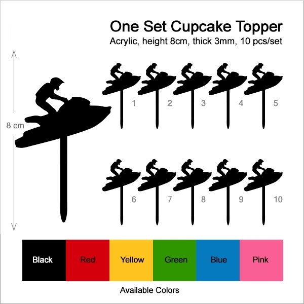Jet Ski Cupcake 10 Toppers Laser Cut Acrylic for Wedding Birthday Baby Shower Bachelorette Engagement Party Decor